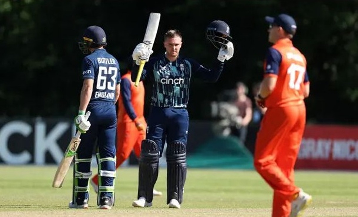 उसका जासन रोयले अविजित १०१ रनको शतकीय पारी खेले । यस्तै जोस बट्लरले अविजित ८६ रन जोडे । फिल साल्ट ४९ रनमा आउट भए । यसअघि पहिले ब्याटिङ गरेको नेदरल्यान्डले स्कट एडवार्डको ६४ तथा म्याक्स ओ दाउदको ५० र बास दि लिडको ५६ रन मद्दतमा २४४ रन बनाएको थियो । इङ्ल्याण्ड पहिलो खेलमा २ड३२ रन र दोस्रो खेलमा ६ विकेटले विजयी भएको थियो ।