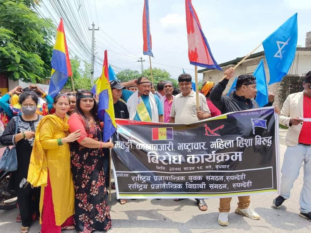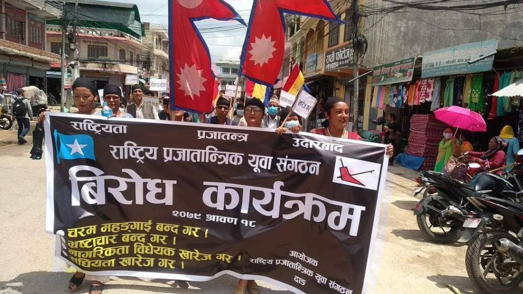 हिन्दुराष्ट्र र राजसंस्थाको पुनःस्थापना, संघीयताको खारेजी, राष्ट्र प्रमुखको रुपमा राजा, जनताबाट प्रत्यक्ष निर्वाचित कार्यकारी प्रधानमन्त्री, पूर्ण समानुपातिक निर्वाचन प्रणालीको व्यवस्था, आगामी प्रदेश र संघको निर्वाचनलाई धाँधलीरहित र विश्वसनीय बनाउन निश्पक्ष चुनावी सरकार गठन लगायत महंगी, बेरोजगारी, किसान, मजदुरका समस्या समाधानका विभिन्न २२ सुत्रीय माग राखी राप्रपाले प्रधानमन्त्रीलाई ज्ञापनपत्र बुझाएको थियो । सोही माग पूरा गराउन दबाबमुलक कार्यक्रम जारी रहेको उनले बताए ।