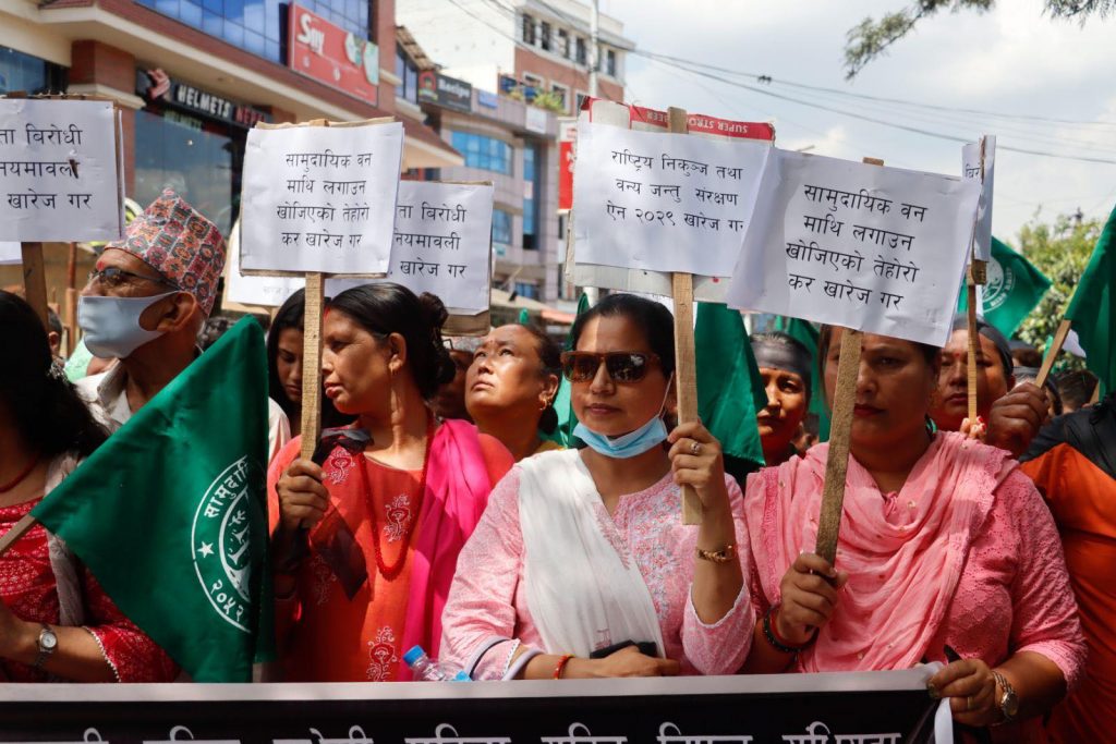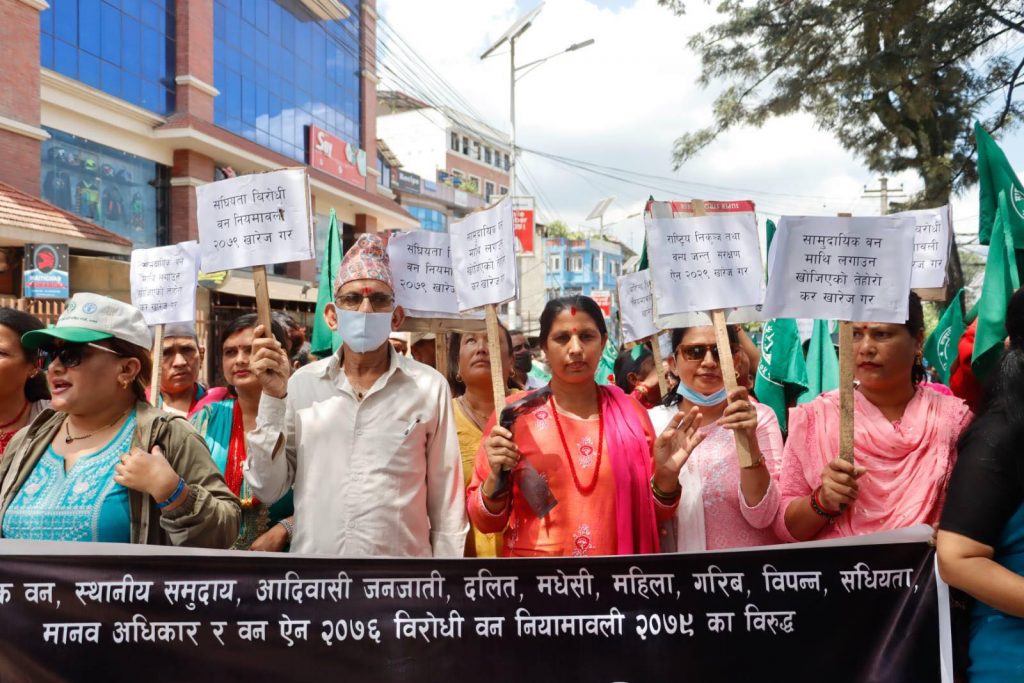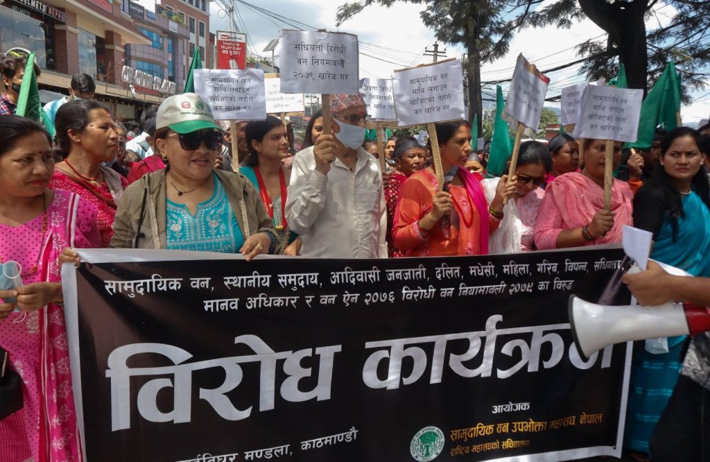 ‘वन नीतिविपरितको वन नियमावली २०७९ खारेज गर, सामुदायिक वनमाथि लगाइएको नयाँ नियमावली खारेज गर, संघीयताविपरीत वन नियमावली खारेज गर, महिला विरोधी वन नियमावली २०७९ खारेज गर, सामुदायिक वनमाथि लगाउन खोजिएको तेहोरो कर खारेज गर,’ जस्ता नाराहरू लगाउँदै माइतीघरबाट निकालेको र्याली नयाँ बानेश्वरमा पुगेर कोण सभामा परिणत भएको थियो ।