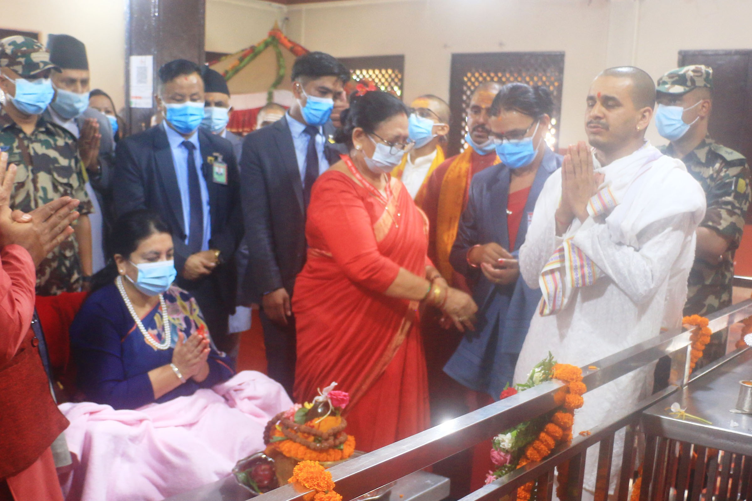 पोखरा । राष्ट्रपति विद्यादेवी भण्डारीले आज बिहान पोखराको विन्ध्यवासिनी मन्दिरमा पूजाअर्चना गरेकी छन् । सो अवसरमा राष्ट्रपति भण्डारीले विन्ध्यवासिनीको मुख्य मन्दिरसहित परिसरका शिव र लक्ष्मीनारायण मन्दिरको दर्शन गरिन् ।