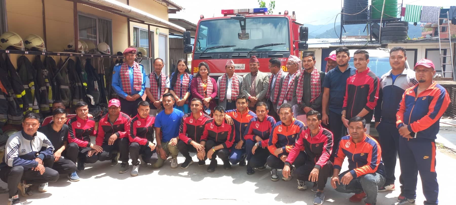 जिल्ला प्रशासन कार्यालय भक्तपुर र जुद्ध बारुण यन्त्र कार्यालय भक्तपुरको माग बमोजिम खरिद गरिएको दमकल शुक्रबार एक कार्यक्रमका बीच जुद्ध बारुण यन्त्र कार्यालय भक्तपुलाई हस्तान्तरण गरिएको छ ।