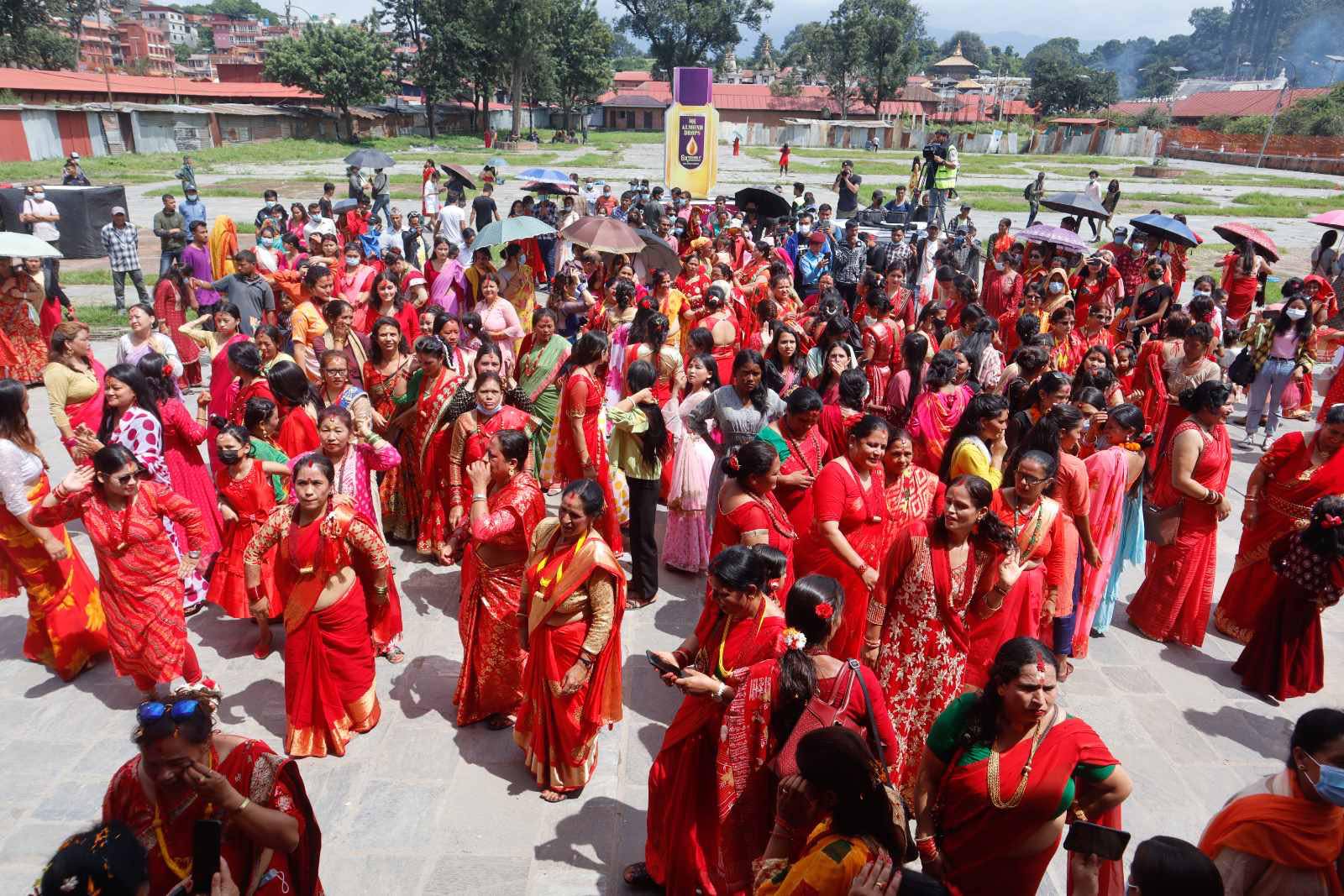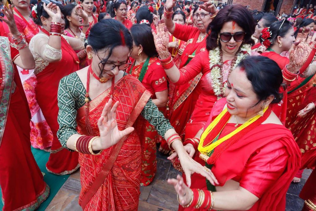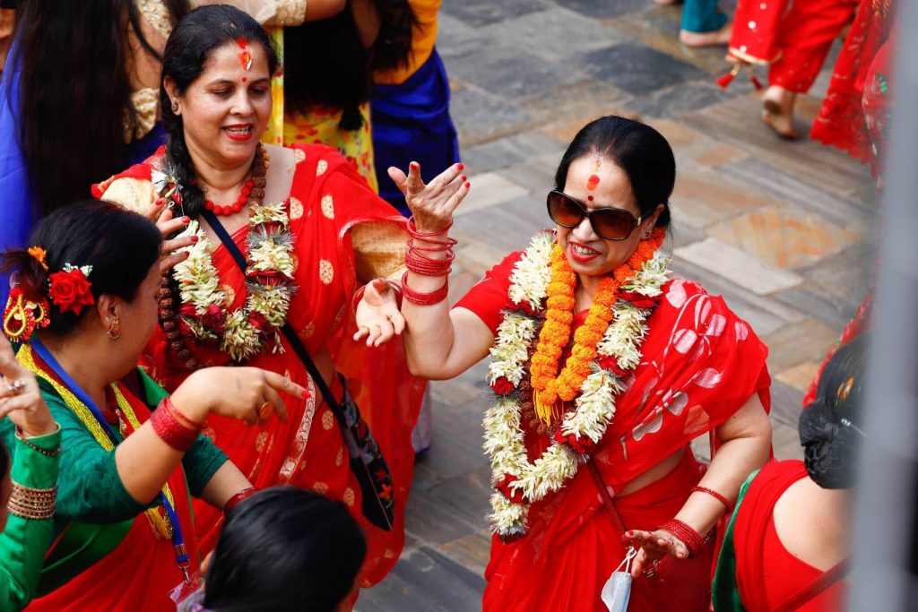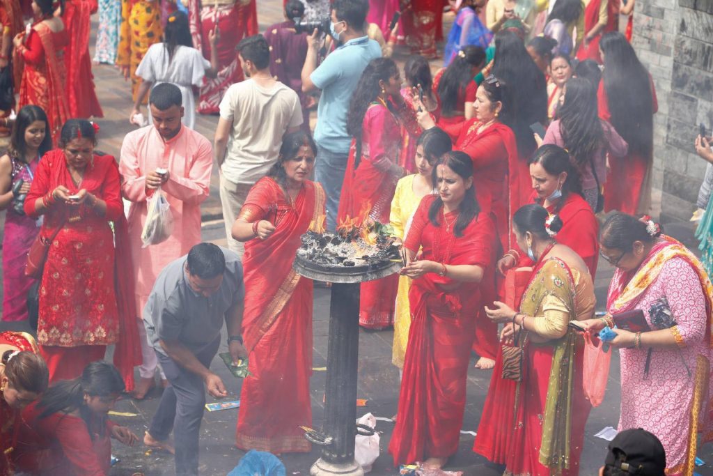 हरितालिका तीजका अवसरमा भगवान पशुपतिनाथको दर्शन गर्न आएका सर्वसाधारण । दर्शनार्थीलाई सहज होस् भनेर आज पशुपतिनाथ मन्दिरका सबै चार ढोका खुलाइएको छ । श्रीमानकाे दीर्घायूकाे कमना गर्दै यस दिन नेपाली महिलाले निलाहार व्रत बस्ने गर्छन । व्रत बसेकै अवस्थामा शिवालयहरूमा नाचगान र रमाइलाे समेत गर्ने गर्छन ।