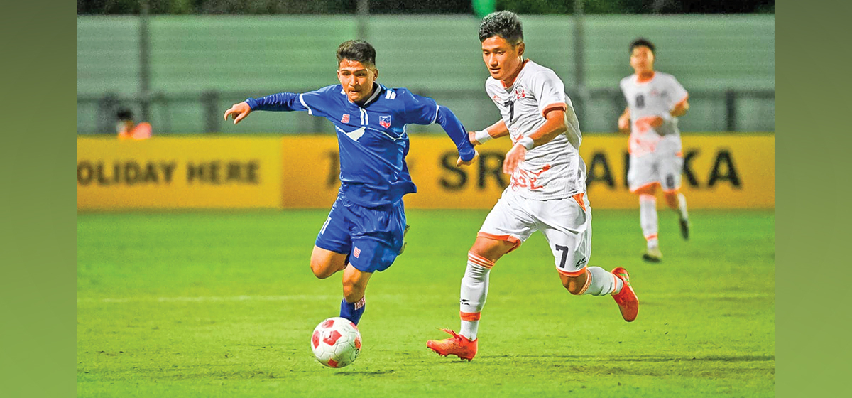 काठमाडौं । भुटानलाई २-१ ले पराजित गर्दै नेपाल एक खेल अगावै श्रीलंकाको कोलम्बोमा जारी साफ यु १७ च्याम्पियनसिपको सेमिफाइनलमा प्रवेश गरेको छ । नेपालको जितमा युनिस बुढाथोकी र सिमान्त थापाले समान एक गोल गरे । भुटानका जितसुन दोर्जेले एक गोल गरे ।