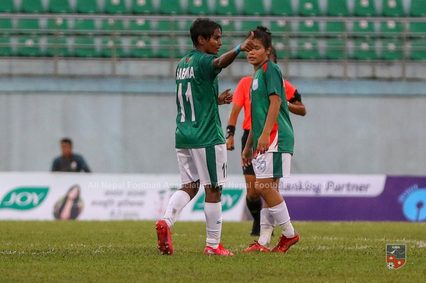 ३१ औं मिनेटमा सबिनाले गोल गर्दा बंगलादेशको अग्रता ३–० गोलको भयो । ३५ औं मिनेटमा सबिनाले व्यक्तिगत दोस्रो गोल गर्दा बंगलादेश ४–० ले अघि रह्यो । ५९ औं मिनेटमा सबिनाले ह्याट्रिक पूरा गरिन् । ७७ औं मिनेटमा रितुले गोल गर्दै बंगलादेशलाई ६–० को जित दिलाइन् ।