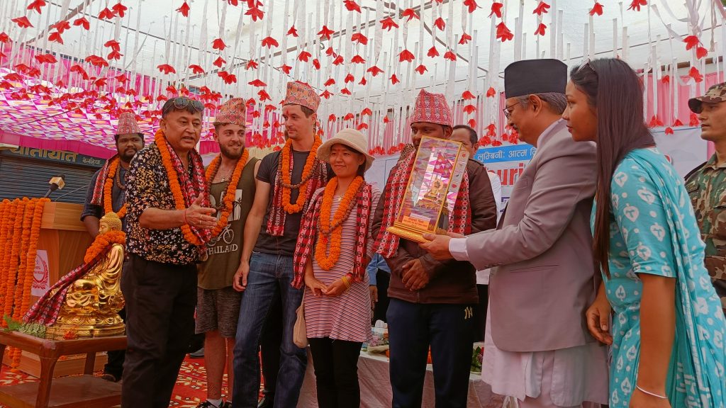 । विभिन्न कार्यक्रम गरी मंगलबार ४३ औँ विश्व पर्यटन दिवस मनाइँदै छ । साेही अवसरमा स्थलमा मार्ग भई नेपाल आएका विदेशी पर्यटकलाई सीमानाका बेलहियामा गृहमन्त्री बालकृष्ण खाण, लुम्बिनी प्रदेशका पर्यटन मन्त्री डिल्ली चाैधरी र पर्यटन व्यवसायीहरुले स्वागत गरेका छन् । क्यानाडा, इजरायल, चीन र दिल्लीबाट आएका ५ पर्यटकलाई स्वागत गरिएकाे हाे ।