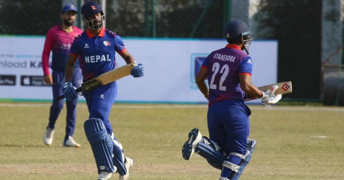 उनले ५७ बल खेल्दै दुई छक्का र चार चौका प्रहार गरे । त्यसैगरी सोमपाल कामीले १६, ललित राजवंशीले ११ तथा दीपेन्द्रसिंह ऐरीले १४ रन बनाए । ज्ञानेन्द्र मल्लले नौ रन जोड्दा आरिफ शेखले छ तथा गुल्सन झाले पाँच रन बनाए । त्यस्तै आरिफ शेख एक रनमा आउट भए ।