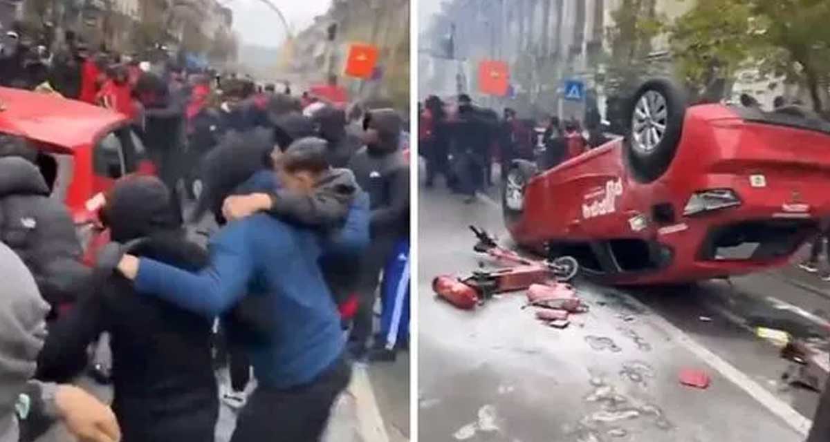 तिनीहरूमध्ये एकले दक्षिण फ्रान्सको मोन्टपेलियरमा कारबाट फ्रान्सेली झण्डा च्यातेका छन् । स्थितिलाई नियन्त्रणमा लिन प्रहरी परिचालन गरिएको थियो ।