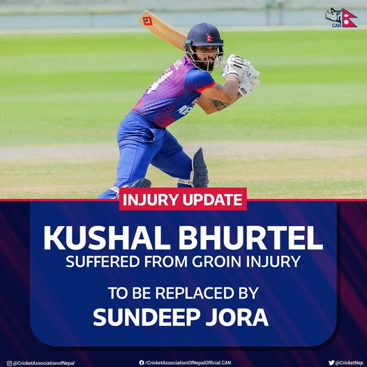 क्यानका अनुसार उनको स्थानमा सन्दीप जोरालाई १४ जनाको टोलीमा राखिएको छ । कुशलले दुई साता अघि नामिबियालाई हराउन १ सय १५ रनको शतकीय इनिङ खेलेका थिए ।