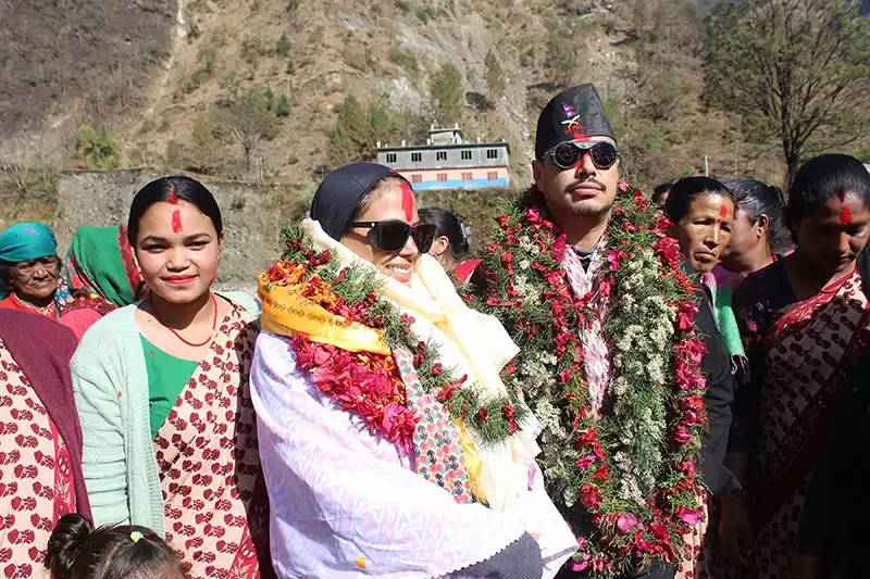 उनलाई म्याग्दीको अन्नपूर्ण गाउँपालिका–३ दानामा अन्नपूर्ण हिमाल आरोहणका लागि सोमबार आएका कतारकी राजकुमारी अल्थानी र आठ हजार मिटर अग्लो १४ वटा हिमाल आरोहण गरेका निर्मल पुर्जा (निम्स) लाई स्वागत गरिँएको छ ।