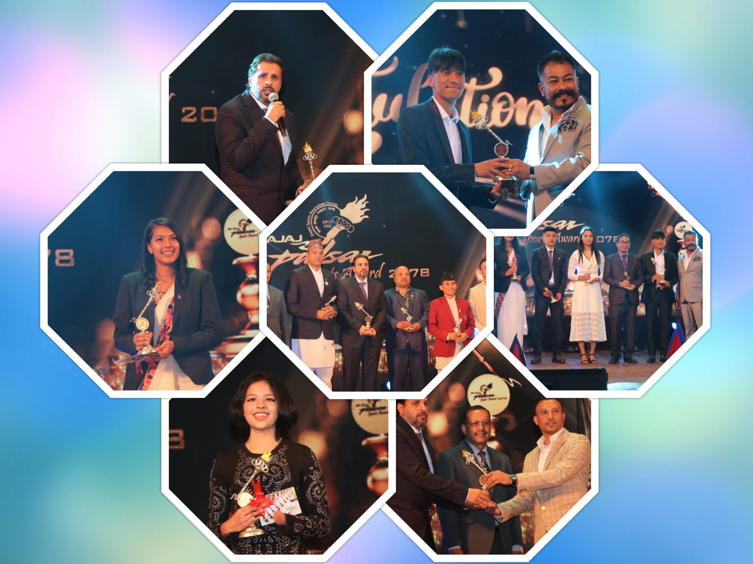 काठमाडौं। नेपाल खेलकुद पत्रकार मञ्च (एनएसजेएफ) ले मंगलबार विभिन्न विधामा खेलाडीहरुलाई स्पोटर्स अवार्डबाट सम्मानित गरेको छ ।