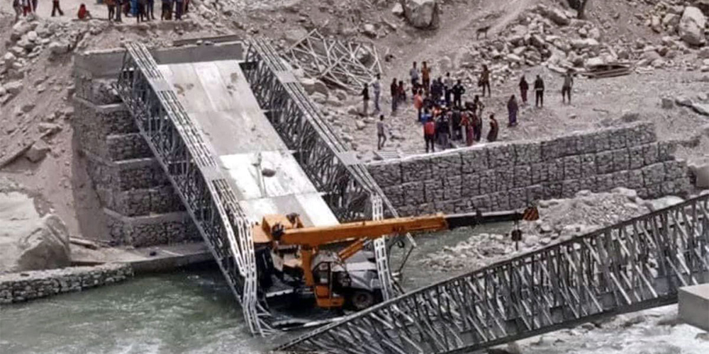 काठमाडौं । जाजरकोट र रुकुम पश्चिम जोड्ने गरी भेरी नदीमा निर्माणाधीन बेलिब्रिज भाँचिएको छ ।