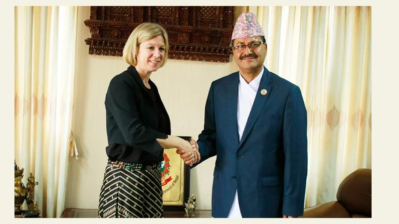 काठमाडौं।नवनियुक्त परराष्ट्रमन्त्री एनपी साउद र नेपालका लागि बेलायतकी राजदूत निकोला पोलिटबीच भेटवार्ता भएको छ। परराष्ट्रमन्त्री साउदलाई भेट्न राजदूत पोलिट बिहीबार सिंहदरबारस्थित परराष्ट्र मन्त्रालय पुगेकी हुन्।