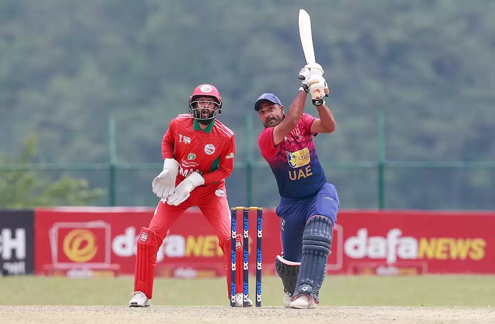 युएईका लागि कप्तान मुहमद वासिमले सर्बाधिक ४८ रन बनाए भने रामिज शाहजादले ४६, असिफ खान र बसिल हमिदले ३४-३४ रन बनाए । त्यस्तै आर्यन लाक्राले २५रन बनाएका थिए ।