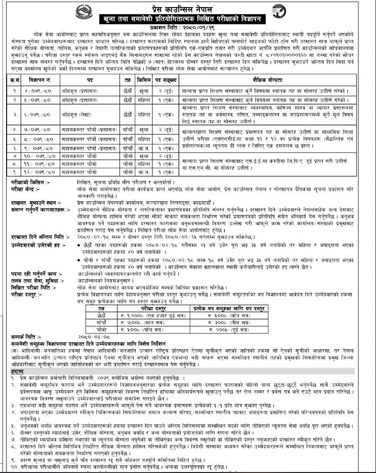 काठमाडौं । नेपाल प्रेस काउन्सिल जागिर खुलेको छ ।