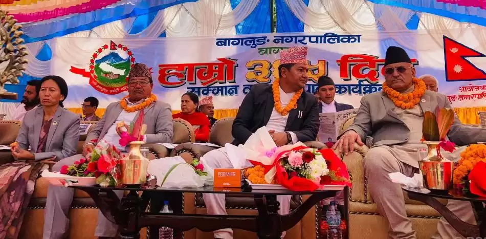 “जनप्रतिनिधि होस् वा पार्टीको नेतृत्व एक वर्षमा काम ग¥यो गरेन् भनेर मुल्याङ्कन गर्ने होइन, एक वर्षमा त कामको सुरुवात गर्ने दिशा समात्यो कि समातेन भनेर हेर्ने हो”, उनले भने । उनले बागलुङका प्रदेशसभा सदस्य, प्रतिनिधिसभा सदस्य, पूर्व जनप्रतिनिधि तथा विभिन्न सामाजिक क्षेत्रका ६० जनाभन्दा धेरैलाई सम्मान गरेका थिए ।
