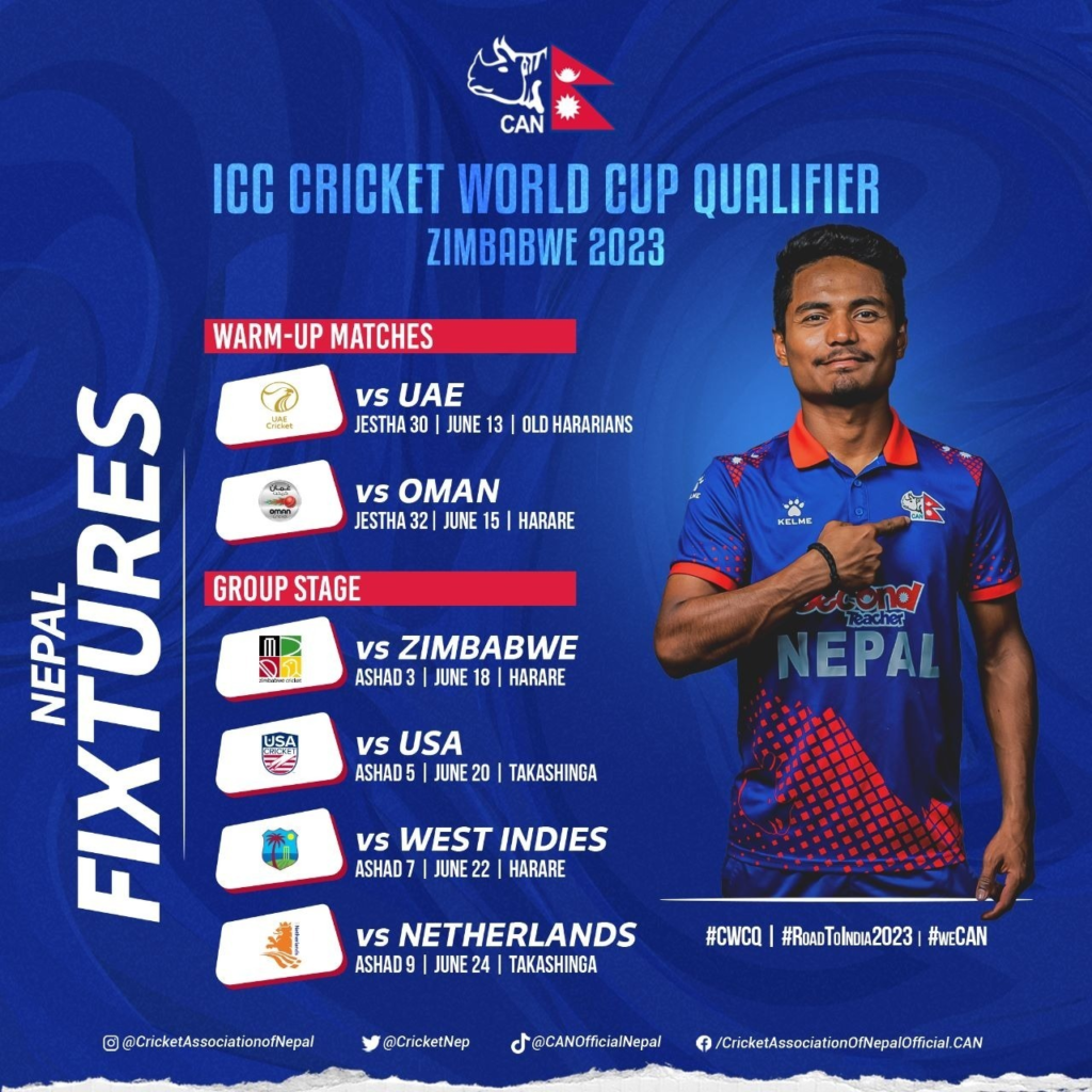 आईसीसीले आज गरेको ड्र अनुसार नेपाल, वेष्टइण्डिज, जिम्बावे, नेदरल्याण्ड्स र अमेरिका समूह एमा परेका हुन् ।