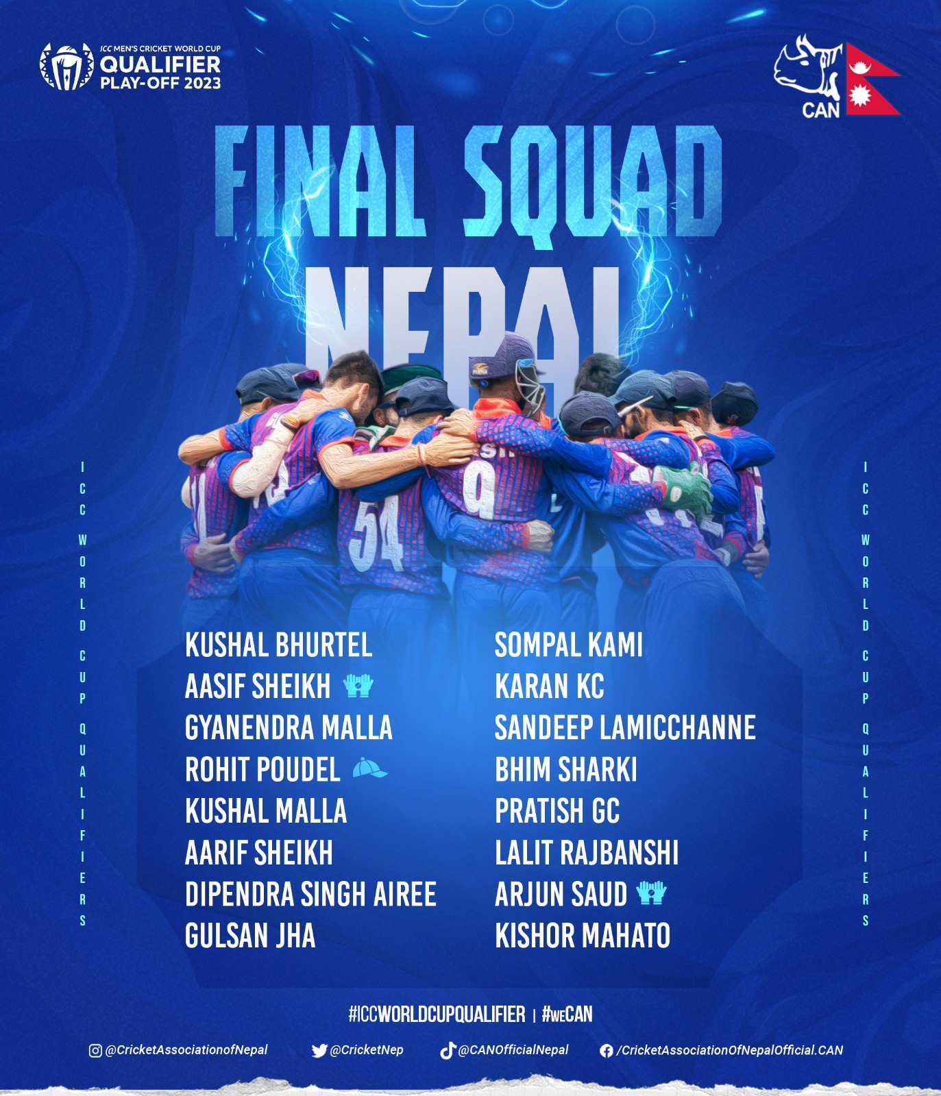क्यानका अनुसार रोहित पौडेलको नेतृत्वका १६ सदस्सीय टोलीले एकदिवसीय छनौट खेल्ने पक्का गरेको हो ।