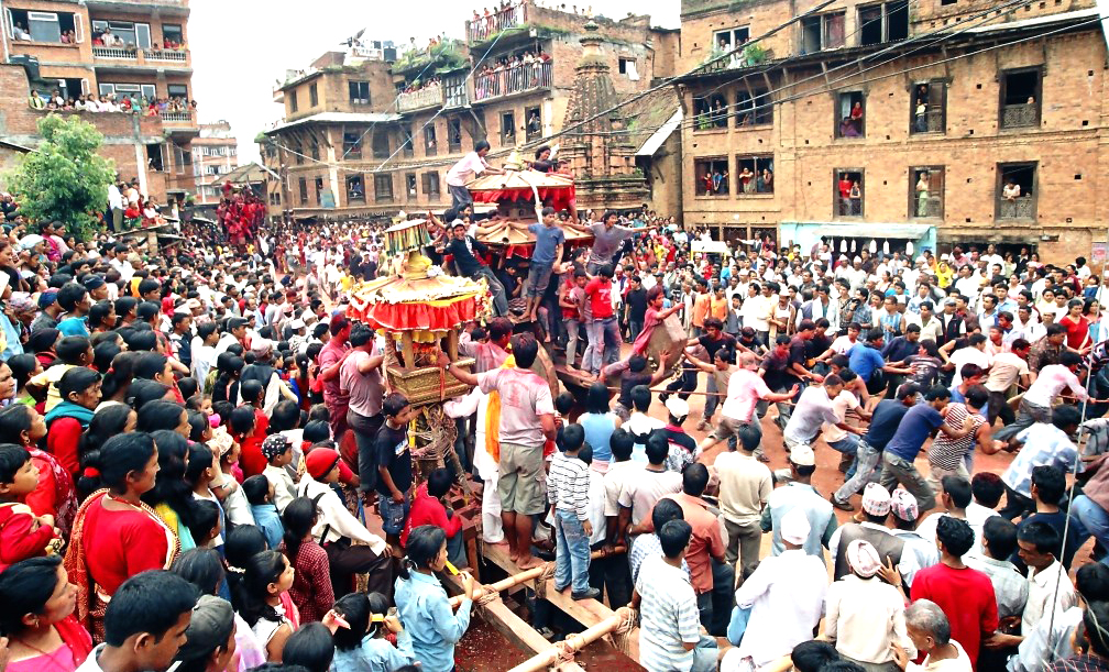 साथै इन्द्रेश्वर महादेव मन्दिरको पूर्वमा रहेको गणेशको मूर्तिलाई खटमा राखी धुमधामका साथ नगर परिक्रमा गराइन्छ । जात्राको मुख्य आकर्षण अर्थात् पूर्णिमाका दिन सबेरै बजारमा भद्रकाली, महादेव र इन्द्रेश्वरका तीनवटा रथको भागदौड गराउने र रथ भेटिँदा एकापसमा जुधाउने काम हुन्छ । यही क्रियाकलापलाई जात्राको मुख्य आकर्षणका रूपमा लिँदै युवायुवतीको सहभागिता उत्साहजनक रहने गर्दछ ।