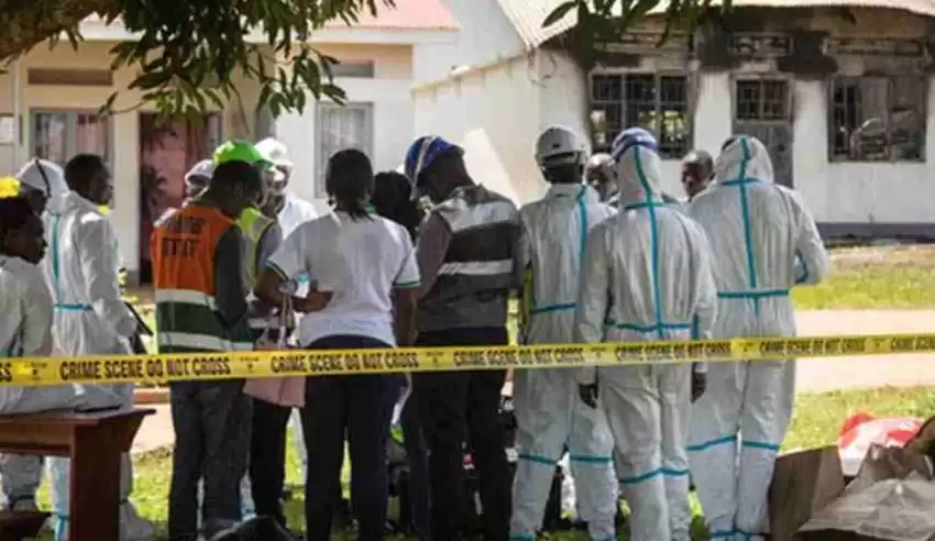 युगान्डा प्रहरी बलका प्रवक्ता फ्रेड एनान्गाले ट्वीट गरेका छन् “एक छात्रावास जलाइयो र खाना पसल लुटियो । हालसम्म विद्यालयबाट २५ शव निकालेर बवेरा अस्पतालमा सारिएको छ ।”