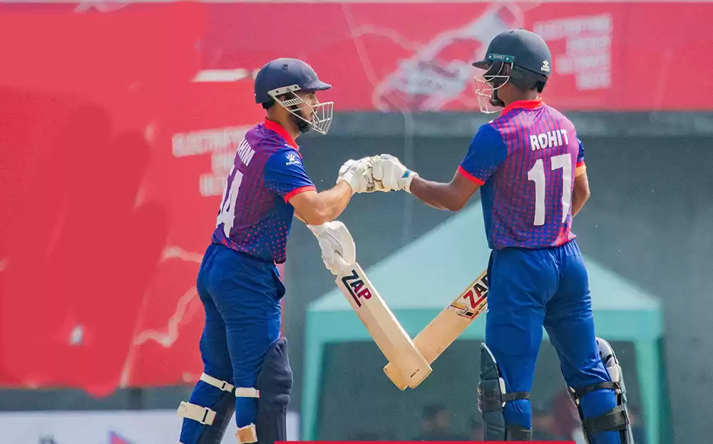 कप्तान रोहित पौडेल ४३ बलमा ३० रन जोड्दै आउट भएका थिए । आसिफ शेख ३६ बलमा २८ रन जोड्दै आउट भएका थिए । ओपनर कुशल भुर्तेल ५ रनमा बोल्ड आउट हुँदाी भीम सार्की दुई रनमै आउट भएका थिए ।