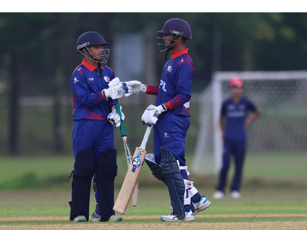नेपालका ओपनर सुर्यांशु कोइरालाले ३२ बलमा ५ चौकासहित ३२ रनका साथ क्रिजमा रहेका छन् । उनलाई अर्का ओपनर निरज कुमार यादवले १६ बलमा १० रनका साथ दिइरहेका छन् ।