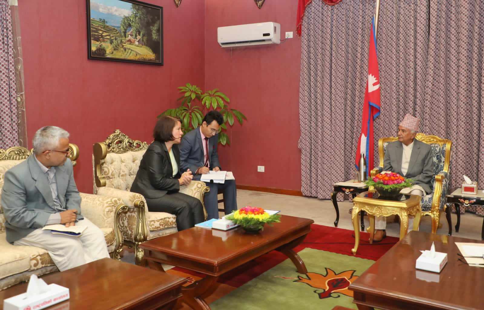 काठमाडौँ । राष्ट्रपति रामचन्द्र पौडेलसँग नेपालका लागि युरोपेली संघकी राजदूत नोना डेप्रेजले भेट गरेकी छन् ।