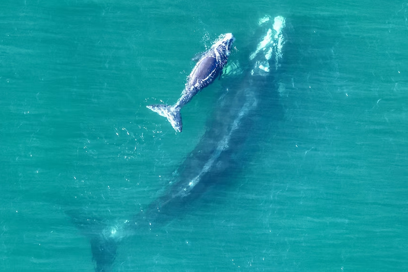 सिड्नी। अस्ट्रेलियाको पूर्वी तटमा दुर्लभ प्रजातिको साउदर्न राइट ह्वेलका माउ र बच्चा फेला परेका छन्।