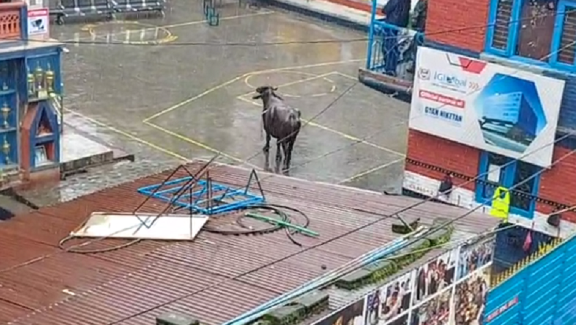 काठमाडौं । काठमाडौँको बुद्धनगरमा भैँसीले आतंक मच्चाएको छ । दाहिने सिङ भाँचिएको र शरीरमा ‘८ नम्बर’ लेखिएको भैंसी बस्तीमा पसेपछि स्थानीय त्रसित भएका हुन् । भैंसी अहिले बुद्धनगरको ज्ञान निकेतन स्कुल भित्र पसेको छ ।
