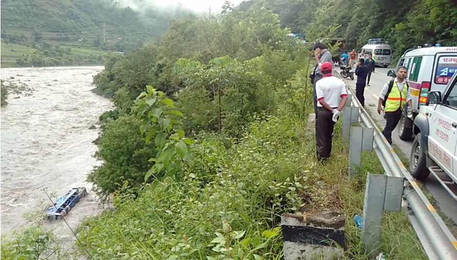 काठमाडौंबाट पोखरा जाँदै गरेको प्रदेश ३–०१–००५ ख ९९५२ नम्बरको बस आज बिहान सवा ११ बजे धादिङको गजुरी–२ चालिसे भन्ने स्थानको सडकबाट करिब ४० मिटर तल त्रिशूली नदीमा खसेको थियो ।