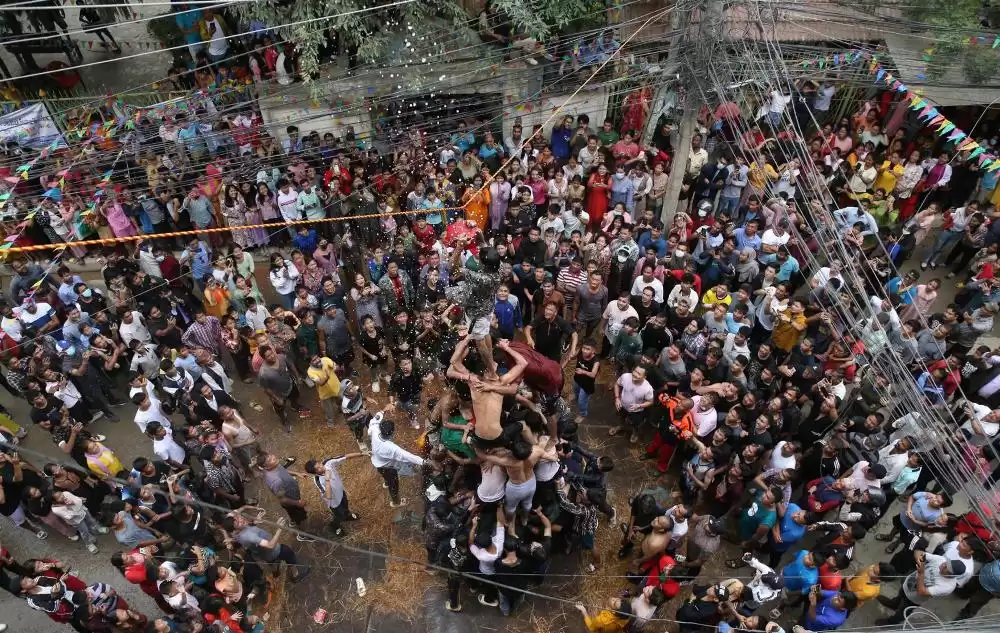काठमाडौँ । श्रीकृष्ण जन्माष्टमीको अवसर पारेर काठमाडौँको सामाखुशीमा ‘मड्का फुटाउने’प्रतियोगिता आयोजना गरिएको छ ।