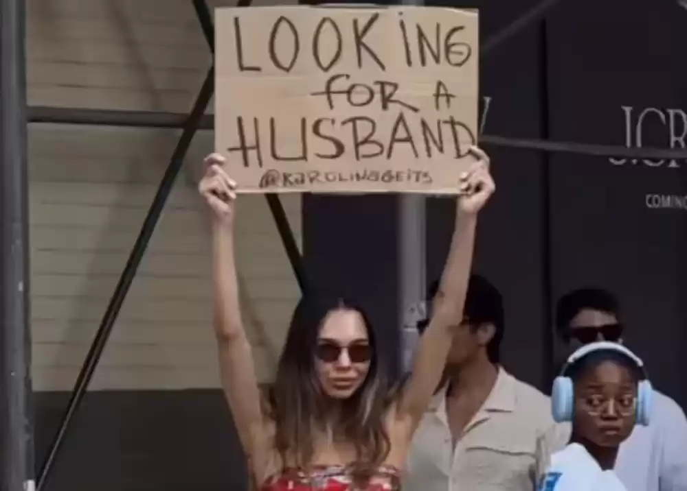 स्मार्टफोन र सामाजिक सञ्जालको जमानामा यी महिलाले जीवनसाथी खोज्ने अनौठो तरिका अचम्मको छ । वास्तवमा यी महिला अमेरिकाको न्यूयोर्क सहरको सडकमा साथीको खोजी गरिरहेकी छिन् । महिलाले हातमा प्लेकार्ड बोकेकी छिन् । जसमा लेखिएको छ, ‘पति खोज्दैछु।’ यसबाहेक उनले आफ्नो इन्स्टाग्राम अकाउन्ट पनि प्लेकार्डको तल दिएका छन् । यो अनौठो विधि देखेपछि त्यहाँबाट जाने हरेक मानिस रोकिन्छन् र हेर्छन् ।