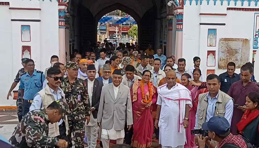 राष्ट्रपति पौडेल करिब ४० मिनेट जानकी मन्दिरमा पूजा अर्चनामा सहभागी भएका थिए । राष्ट्रपति पौडेल ६ दशकदेखि अनवरत रुपमा हुँदै आइरहेको सीताराम राम संकिर्तनमा समेत केहीबेर सहभागी भए ।