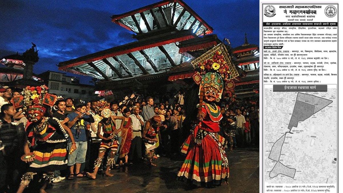 असोज ११ बिहीबार गते बसन्तपुर, मरू, चिंकमुगल, जैसीदेवल, लगन, ब्रह्मटोल, ह्युमत, कोहिटी, भीमसेन स्थान, मरु हुँदै बसन्तपुरसम्म रथयात्रा सञ्चालन हुने भएकाले ती क्षेत्रमा सवारी आवागमन प्रभावित हुने बताइएको छ ।