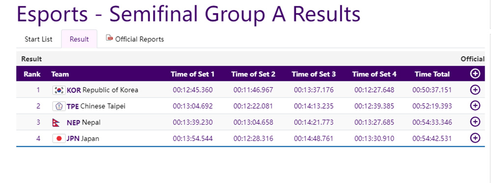 शनिबार बिहान चाइना हाङझाउ इस्पोर्ट्स सेन्टरमा भएको प्रतिस्पर्धाको समूह ‘ए’ को सेमिफाइनलमा नेपाली टिम दक्षिण कोरिया र चाइनिज ताइपेईसँग पराजित भएको हो ।