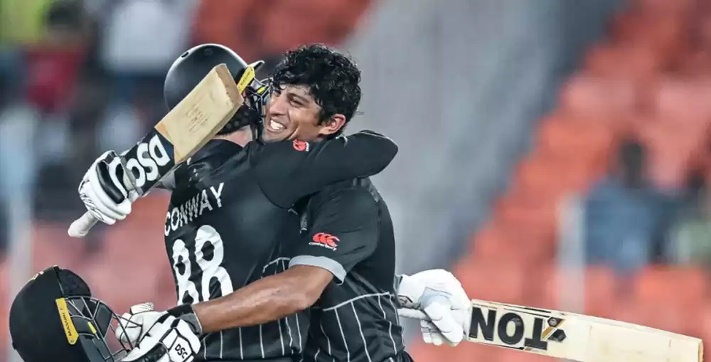 न्यूजील्याण्डका लागि डेभोन कोनवेले अविजित १५२ रन बनाए भने रचिन रविन्द्रले अविजित १२३ रन बनाएका थिए । कोनवे र रविन्द्रले दोस्रो विकेटका लागि २७३ रनको साझेदारी गरेका थिए ।
