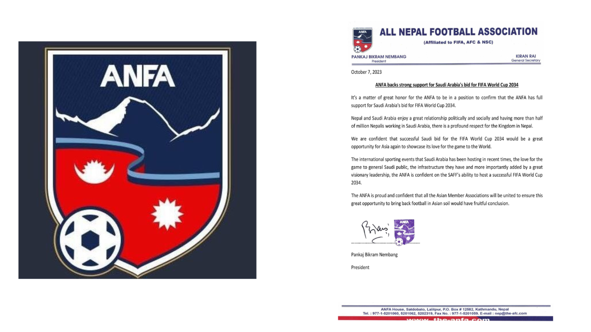 विज्ञप्तिमा एन्फाले सन् २०३४ को विश्वकप नेपालको पोजिसन स्पष्ट रहेको भन्दै साउदी अरबलाई समर्थन गर्ने जनाएको छ ।