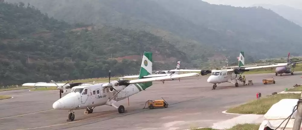 सोलुखुम्बुको लुक्ला विमानस्थलमा पर्यटक ओसार्ने विमान कहिलेकाहीँ फाप्लुको मौसम खुलेपछि त्यहाँ अवतरण गर्ने प्राधिकरण प्रमुख आशोक थापाले बती ।