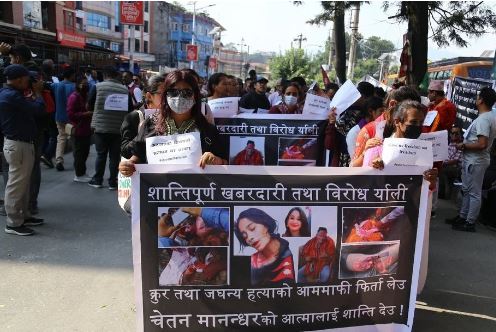काठमाडौं । चेतन मानन्धरको हत्या गरेका योगराज ढकाल ‘रिगल’ को कैद सजाय कट्टा गरेको विरोधमा बुधबार काठमाडौँको माइतीघरमा विरोध प्रदर्शन भएको छ । रिगललाई चेतन मानन्धरको हत्या गरेको आरोप लागेको छ । उनललाई संविधान दिवसको दिन मन्त्रिपरिषद्को सिफारिसमा राष्ट्रपतिले संविधान दिवसको अवसरमा रियलको बाँकी कैद सजाय कट्टा गरेका थिए ।
