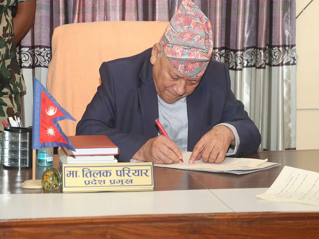 कर्णाली । कर्णाली प्रदेश प्रमुख तिलक परियारले ‘कर्णाली प्रदेश निजामती सेवाको गठन, सञ्चालन र सेवाका शर्त सम्बन्धमा व्यवस्था गर्न बनेको विधेयक’ प्रमाणीकरण गरेका छन् ।