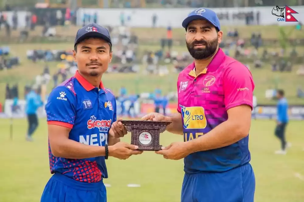 मुलपानी क्रिकेट मैदानमा हुन लागेको यस खेलमा नेपालले टस जितेर पहिला बलिङ गर्ने भएको छ । नेपालका कप्तान रोहित पौडेलले टस जितेर पहिला बलिङ गर्ने निर्णय गरेका हुन् । योसँगै युएईले पहिला ब्याटिंग गर्ने भएको हो ।
