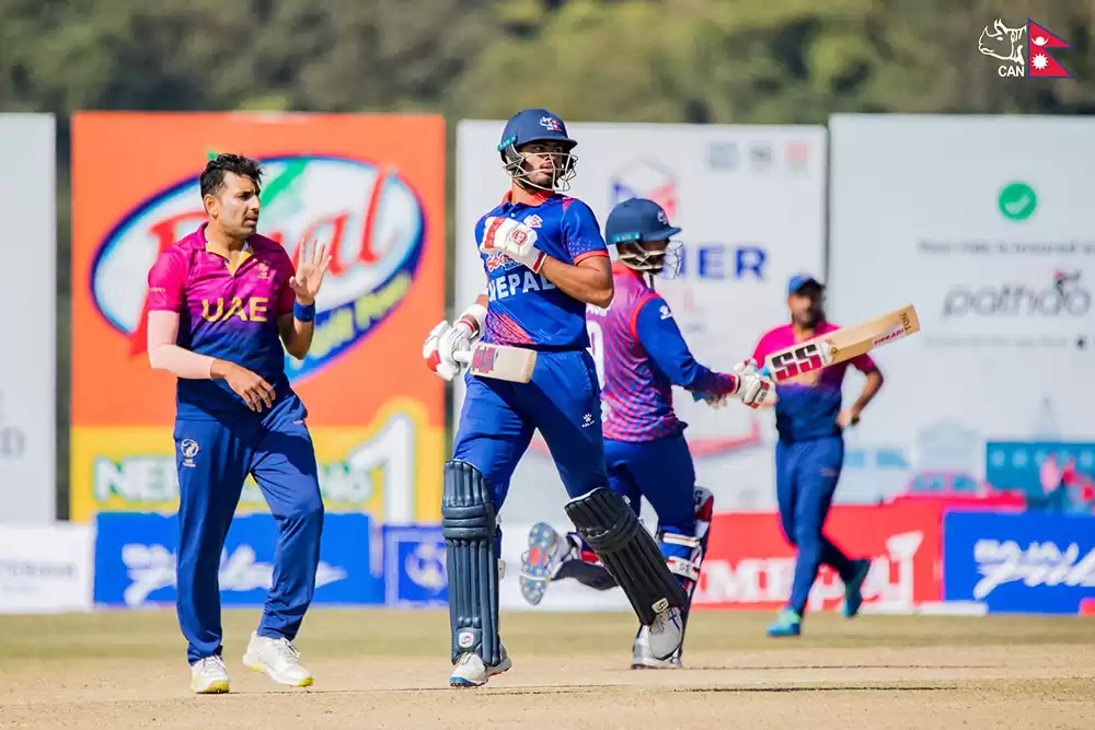 नेपालका गुलशन झा २२ रन बनाएर आउट भएका छन् । उनलाई युएईका बसिल हमिदले आउट गरेका हुन् ।