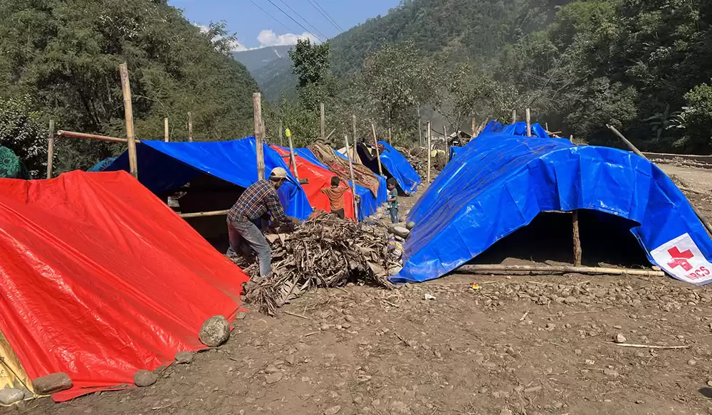 जाजरकोट । जाजरकोट सदरमुकामको सडक हरिया त्रिपालले भरिभराउ छ । भूकम्पका कारण घर भत्किएर खुला आकाशमुनि बसिरहेका स्थानीयवासीलाई सशस्त्र प्रहरीले निर्माण गरेका त्रिपालले चिसोबाट जोगाएको छ । पुराना परम्परागत शैलीमा निर्माण भएका अधिकांश घर भत्किएपछि विस्थापितलाई चिसोबाट जोगाउन र सुरक्षितरूपमा राख्न सशस्त्र प्रहरीले त्रिपालको व्यवस्था गरेको छ ।