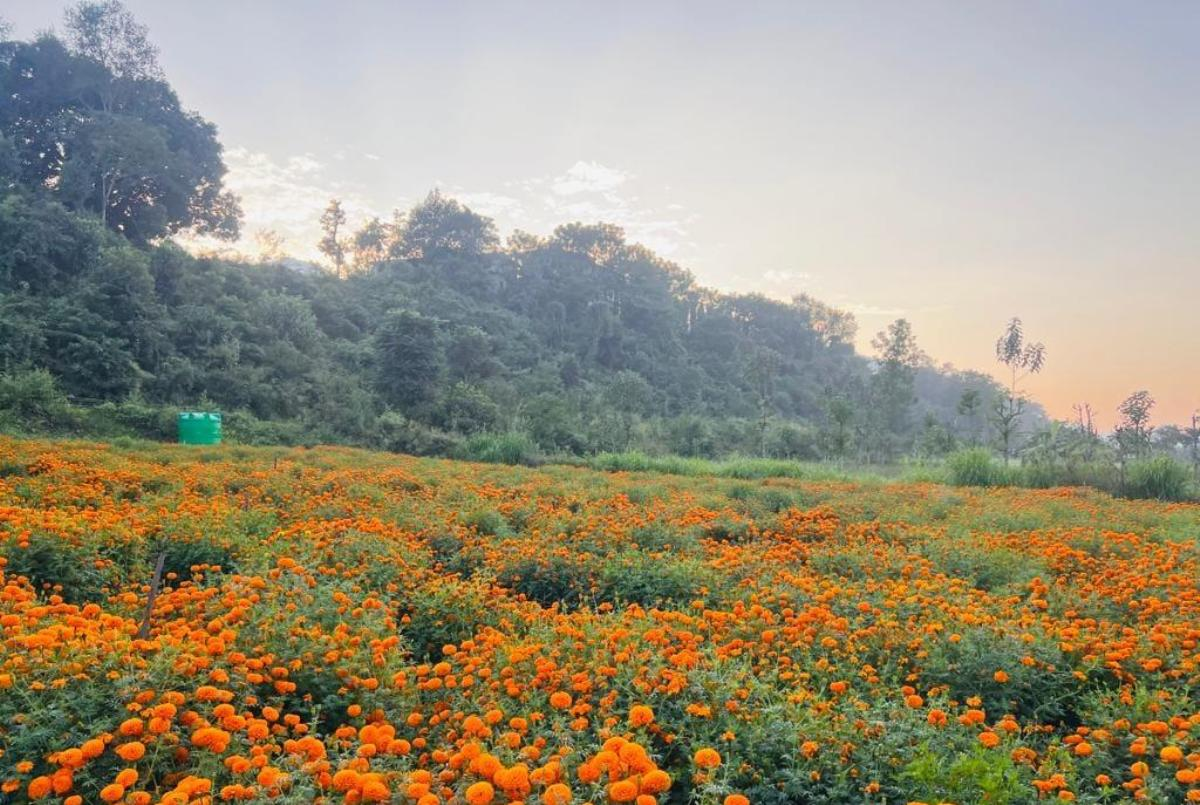 त्यसैगरी म्याग्दे गाउँपालिका–५, स्थित ठूलोखेतमा स्थानीय सुसन पौडेलले करिब चार रोपनी क्षेत्रफलमा सयपत्री फूल खेती गरेका छन् । म्याग्दे गाउँपालिकाको आर्थिक वर्ष २०८०/८१ को पुष्प खेती विकास कार्यक्रमअन्र्तगत पौडेलले पालिकाबाट प्राप्त रु ५० हजार अनुदानसहित कूल रु ८० हजारको लगानीमा सयपत्री फूल खेती गरेका हुन् । चाडपर्वका अवसरमा बर्सेनि लाखौँ रुपैयाँ विदेशिने हुँदा स्थानीय बजार र आवश्यकतालाई दृष्टिगत गरी तिहारमा खपत हुने फूल उत्पादनमा लागेको पौडेलले बताए ।
