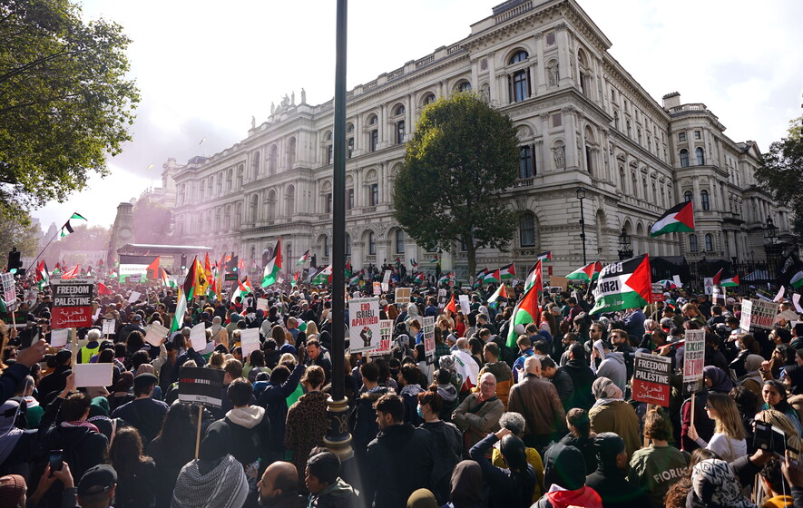 प्यालेस्टाइन समर्थकहरुले आयोजना गरेको प्रदर्शन इजराइल गाजा युद्ध शुरु भएयताकै सबैभन्दा ठूलो प्रदर्शन भएको प्रहरीले जनाएको छ ।