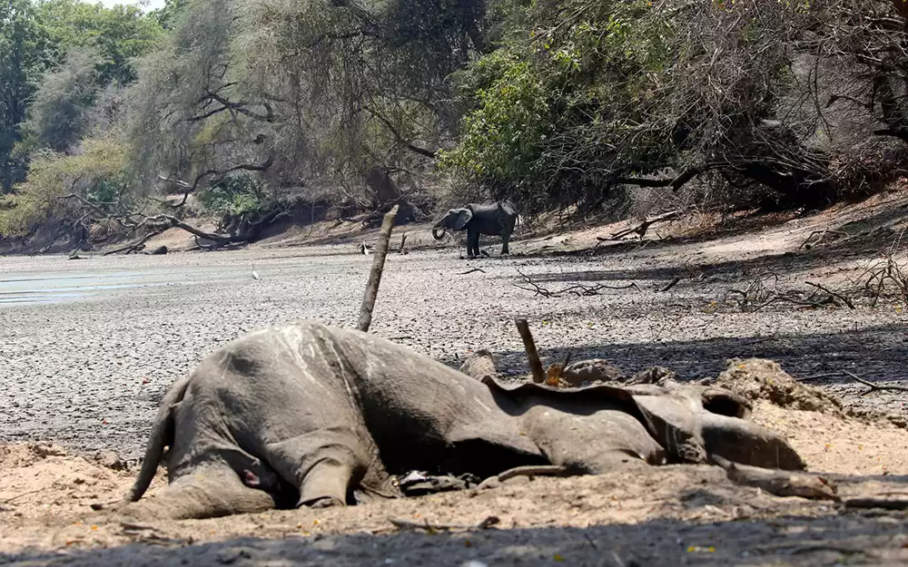 पशु कल्याणको लागि अन्तरराष्ट्रिय कोषले सार्वजनिक गरेको विज्ञप्ति अनुसार हाल सो खडेरीका कारण ग्रीष्मकालीन वर्षा सामान्यभन्दा पाँच हप्ता ढिलो शुरु भएको छ । जसका कारण झण्डै ४५ हजार हात्तीको बास स्थान रहेको जिम्बाब्वेको सबैभन्दा ठूलो संरक्षित क्षेत्र ह्वान्गे राष्ट्रिय निकुञ्जमा दर्जनौं हात्तीहरू मरेका छन् ।