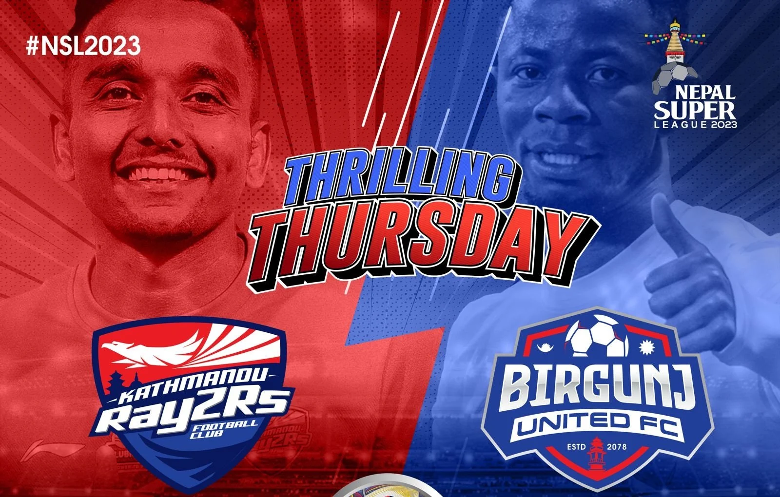काठमाडौँ । राजधानीमा जारी दोस्रो संस्करणको नेपाल सुपर लिग फुटबल प्रतियोगितामा आज काठमाडौं रेज्र्स एफसी र वीरगन्ज युनाइटेड एफसीबिच प्रतिस्पर्धा हुने भएको छ । खेल दशरथ रङ्गशालामा साँझ ५ बजे सुरु हुनेछ ।