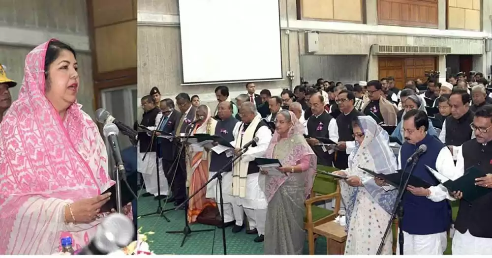 ढाका । बङ्गलादेशकी प्रधानमन्त्री शेख हसिना र उहाँको पार्टीका अन्य सांसदले जनवरी ७ मा भएको संसदीय निर्वाचनपछि बुधबार सांसद् पदको शपथ लिएका छन् । सांसद्हरूलाई बङ्गलादेशको संसद्का सभामुख शिरीन शर्मिन चौधरीले शपथ ग्रहण गराएकी थिइन् ।