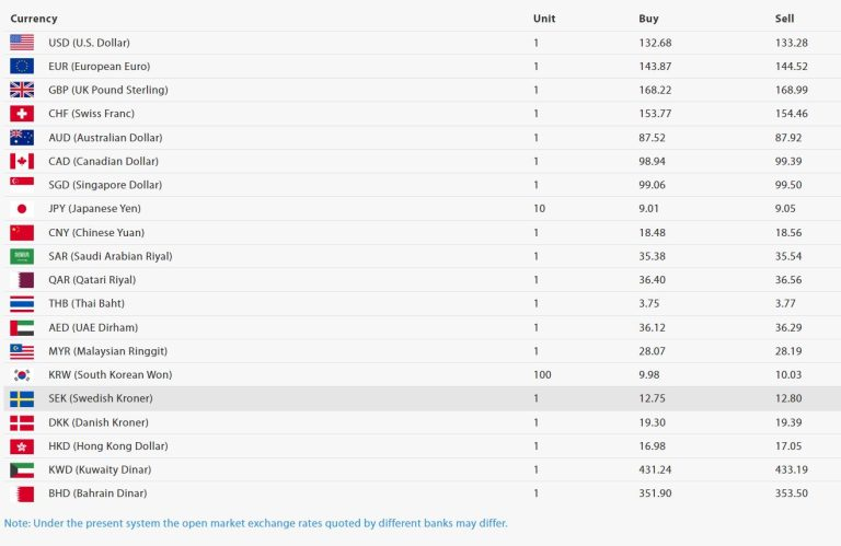 यस्तै, अमेरिकी डलर एकको खरिद दर १३२ रुपैयाँ ६८ पैसा रहेको छ भने बिक्री दर १३३ रुपैयाँ २८ पैसा रहेको छ । त्यस्तै युरोपियन युरो एकको खरिद दर १४३ रुपैयाँ ८७ पैसा रहेको छ भने बिक्री दर १४४ रुपैयाँ ५२ पैसा रहेको छ ।