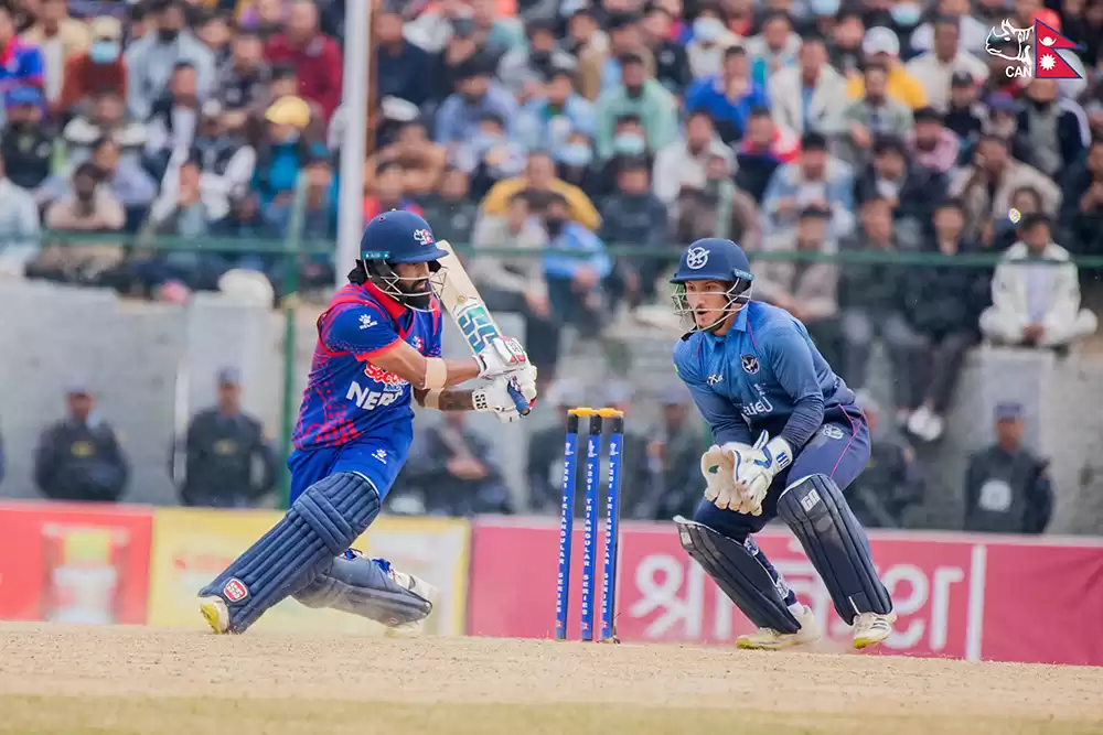 नेपाली बलर रोहित पौडेलले २ विकेट लिए भने करण केसी र अविनाश बोहोराले एक एक विकेट लिएका थिए ।
