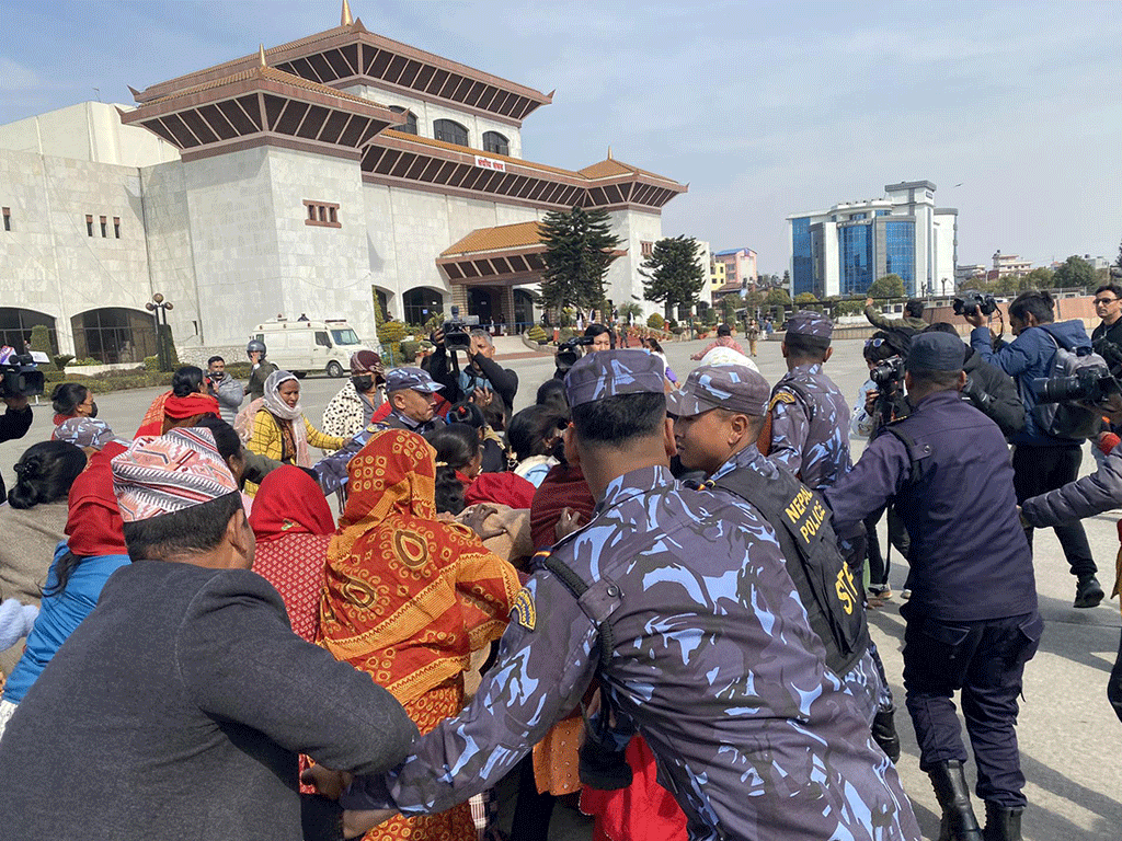 सोमबार दिउँसो लघुवित्तका ऋणी संसद् भवन परिसरभित्र छिरेपछि प्रहरीले ४८ महिला र एक पुरुषलाई नियन्त्रणमा लिएको थियो । पक्राउ परेकाहरूलाई प्रहरी वृत्त, बानेश्वरमा राखिएको छ ।